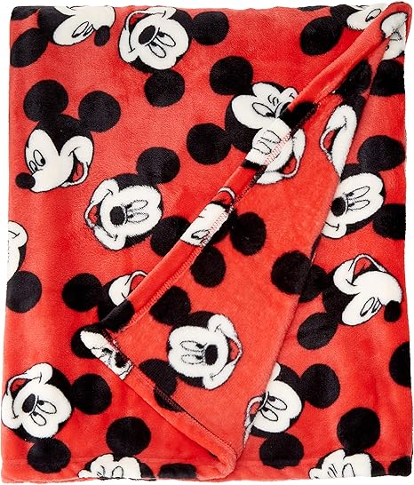 Mickey Mouse Fleece Blanket: This bright, bold red blanket is covered with mickey faces, the iconic mickey head shape and lots of stars.